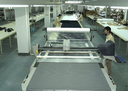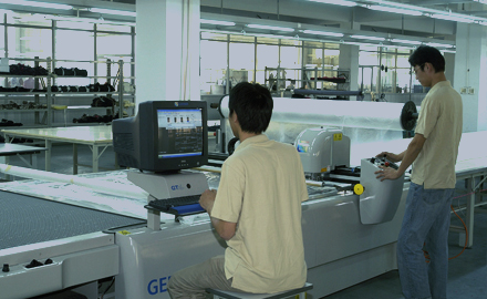 公司采用CAD計算機(jī)輔助排料系統(tǒng)進(jìn)行排料,該系統(tǒng)準(zhǔn)確、高效。鋪料機(jī)代替手工鋪料的優(yōu)點使鋪料均勻、整齊、松緊適宜、降低工人勞動強(qiáng)度。